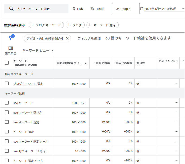 無料ツール「キーワードプランナー」や「Ubersuggest」を使うと、