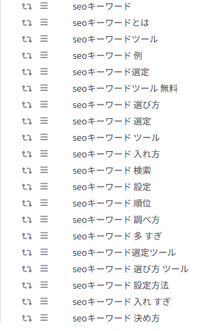 こちらはラッコキーワードで抽出した結果です。